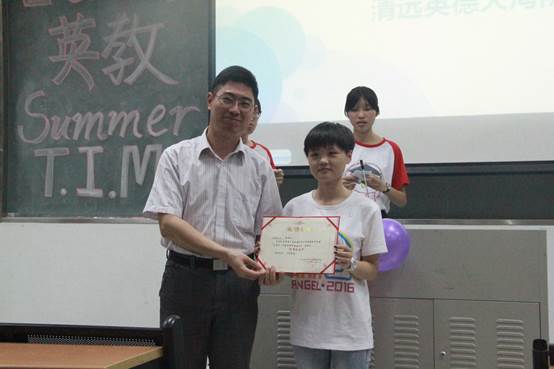 最后是激动人心的颁奖仪式。清远英德大湾队获得优秀队伍称号,徐昶斌为他们颁奖。林泽龙为获得优秀队员称号的同学颁奖,他们是刘雁珊,张睿,何莉怡,吴泽佳和朱美芳。颁奖仪式后,优秀队员朱美芳进行了发言,分享了自己在大湾队这15天的心路历程。
