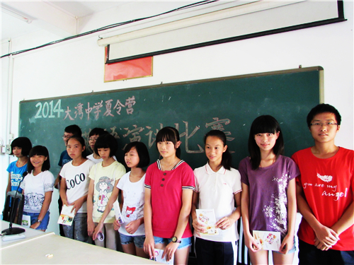 7月27日,清远英德大湾服务队在大湾中学举行了主题为“The Color of my Life”的英语演讲比赛。最终来自初一1班陈欣梅的同学以流畅的语言、自信的肢体动作夺得了本次比赛的一等奖,队长欧楚莹、林少灿和肖金华为获奖者颁发了奖状及奖品。